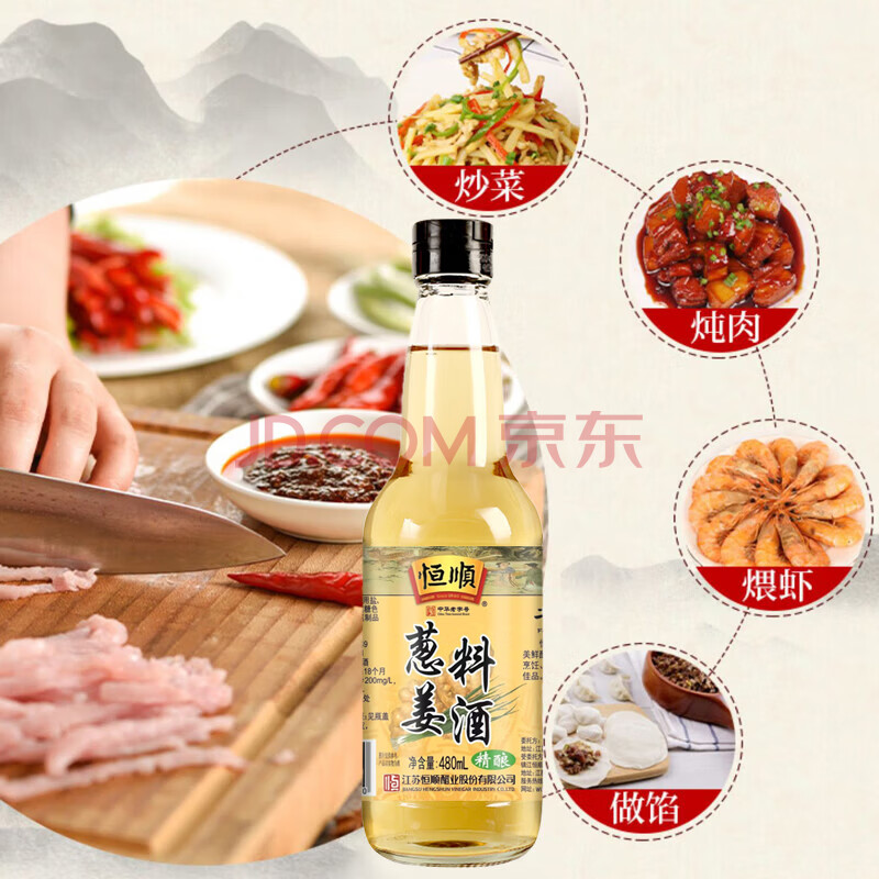 商品相册:恒顺葱姜料酒 10度 480ml 去腥增香提鲜 0防腐剂第