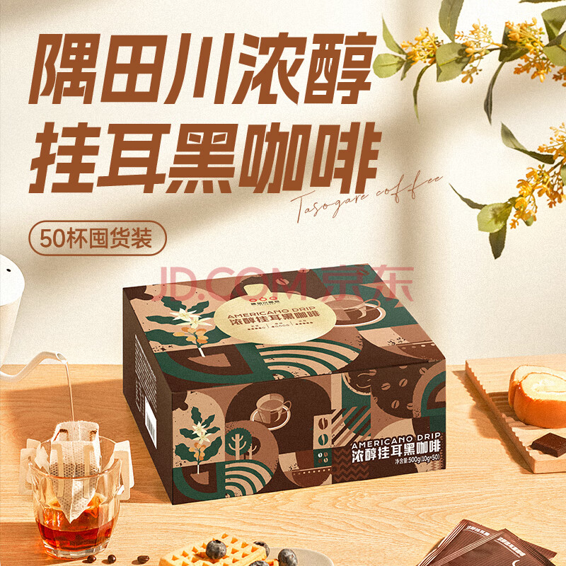商品相册:隅田川浓醇手冲挂滤挂耳式黑咖啡粉节日送礼 浓醇10g*50片装 第1张/共6