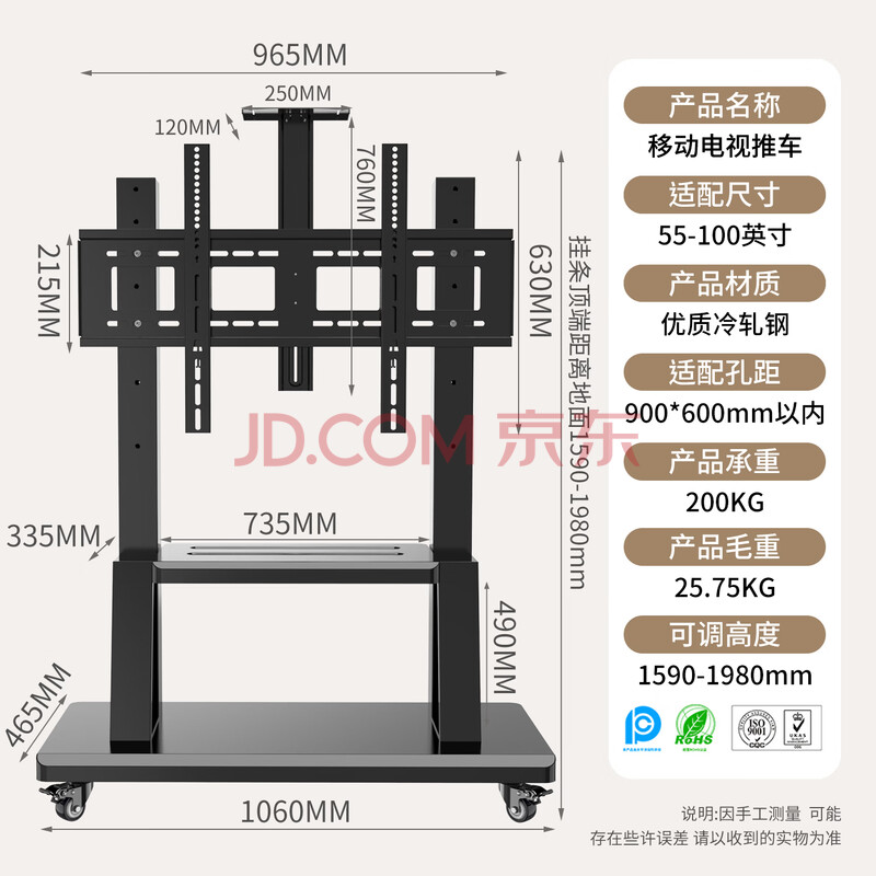 商品相册:ProPre电视移动支架55-100英寸电视大屏落地挂架一体机电视架子电视推车适配海信tcl创维等视频会议架第