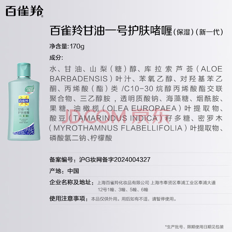 商品相册:百雀羚甘油一号护肤啫喱170g芦荟滋润甘油脸部保湿滋润生日礼物第1张/共5