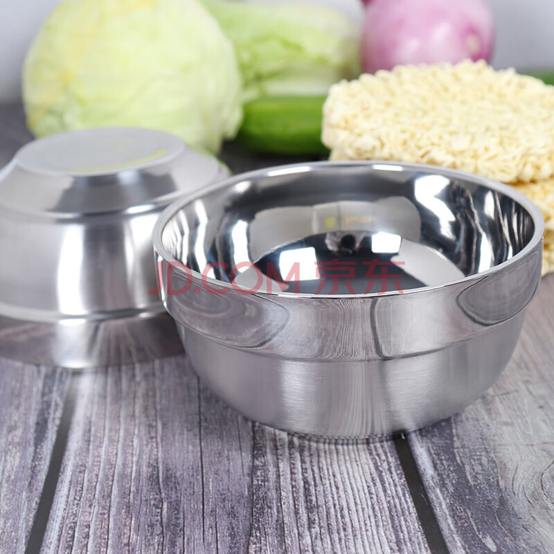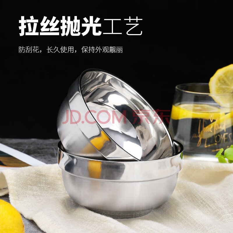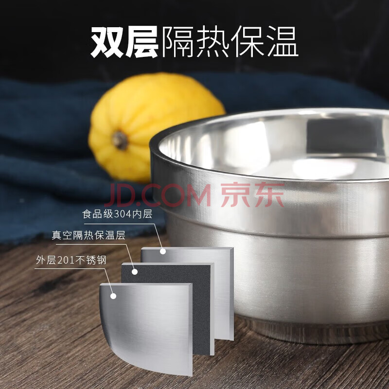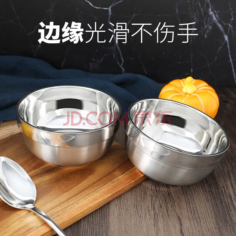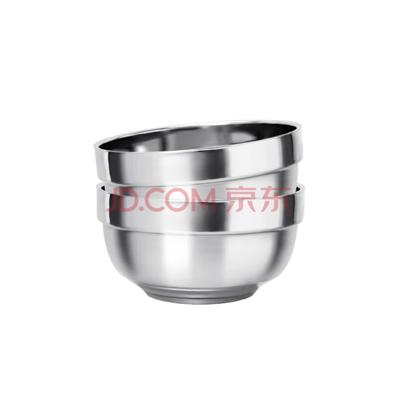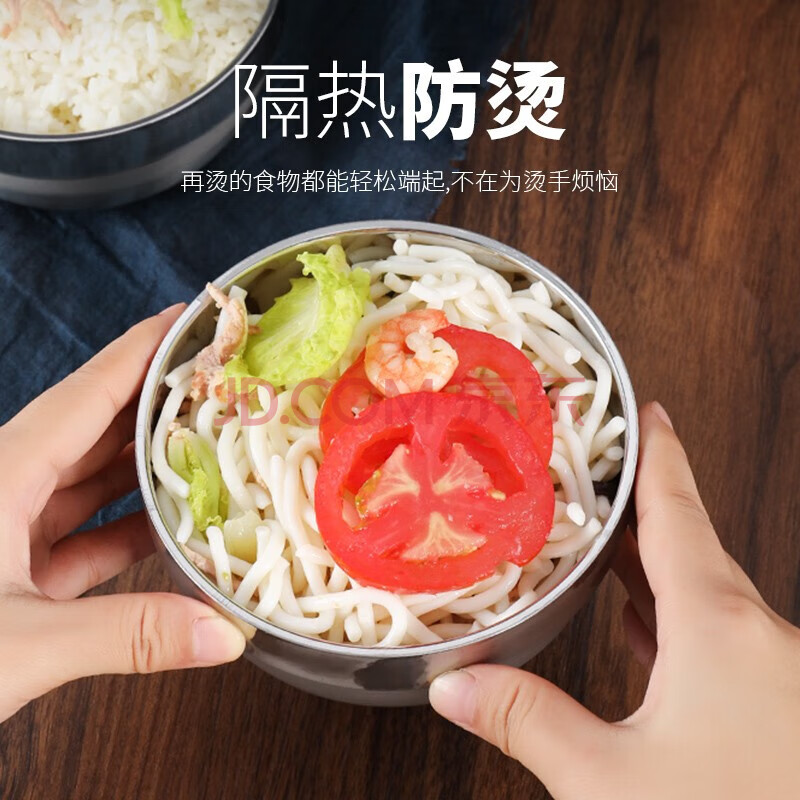 商品相册:贝瑟斯304不锈钢碗 汤碗面碗 加厚双层隔热餐具2只装11.5CM防烫耐摔饭碗第1张/共8