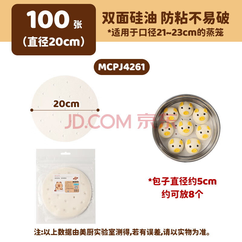 商品相册:美厨(maxcook)蒸笼纸包子垫纸蒸包子纸蒸笼屉纸一次性100张 直径20cm MCPJ4261第1张/共8