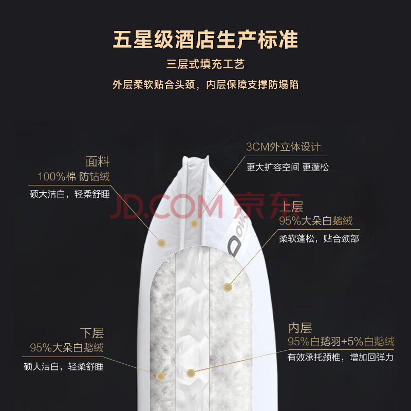 商品相册:Downia 澳洲枕芯 五星级酒店升级款95%白鹅绒羽绒枕头芯 48*74CM第
