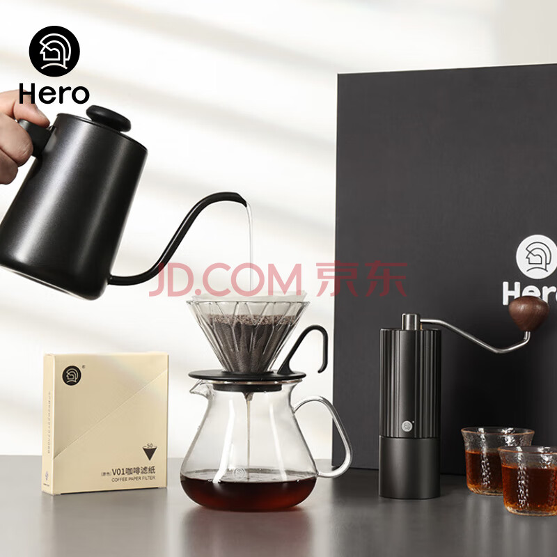 商品相册:Hero专业版手冲咖啡套装磨豆机咖啡杯手磨咖啡8件套手冲礼盒礼物第