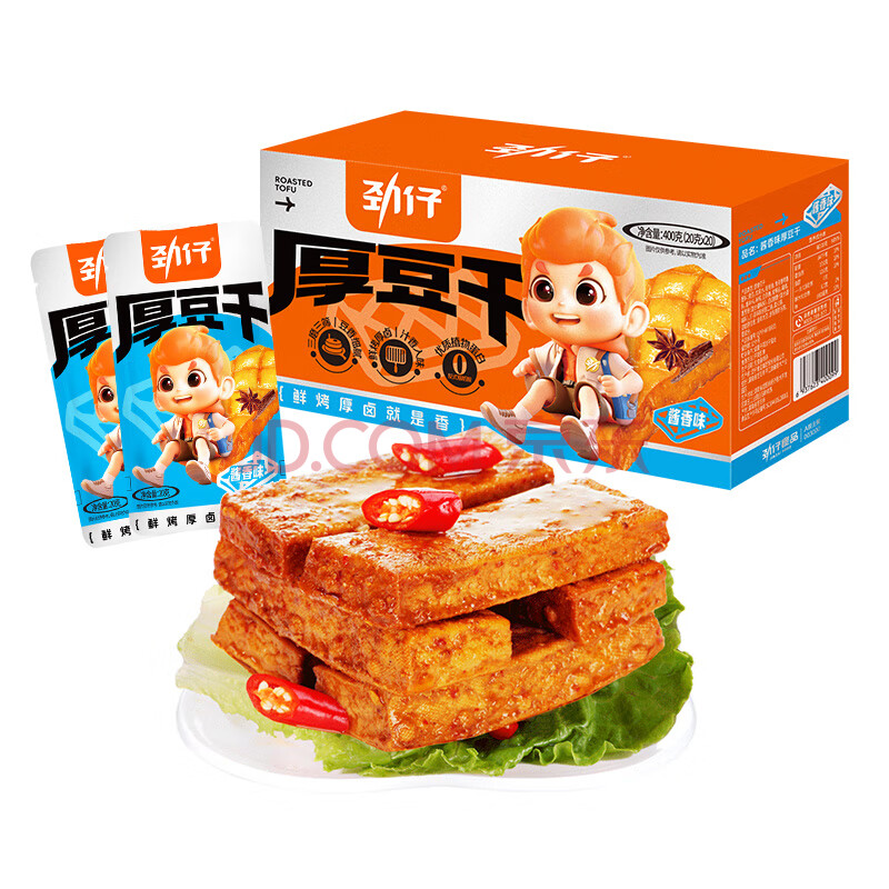 商品相册:劲仔厚豆干 酱香味 20g*20包 休闲零食豆腐干 素食小吃第