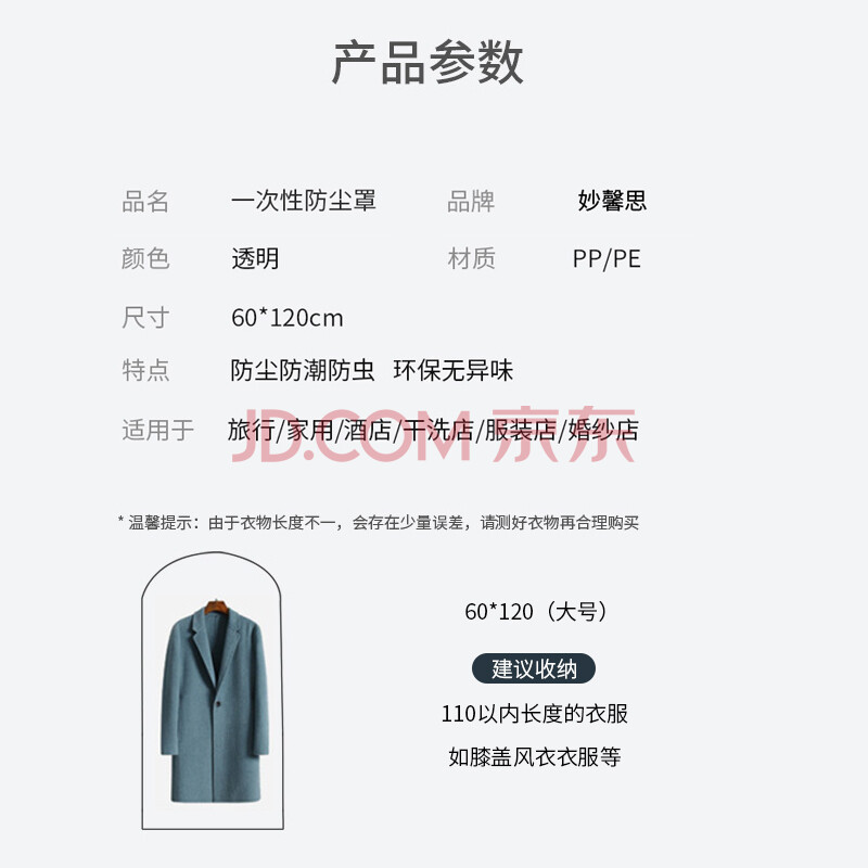 商品相册:妙馨思衣服防尘袋一次性衣服防尘罩收纳袋大衣透明防尘挂衣袋塑料挂袋第