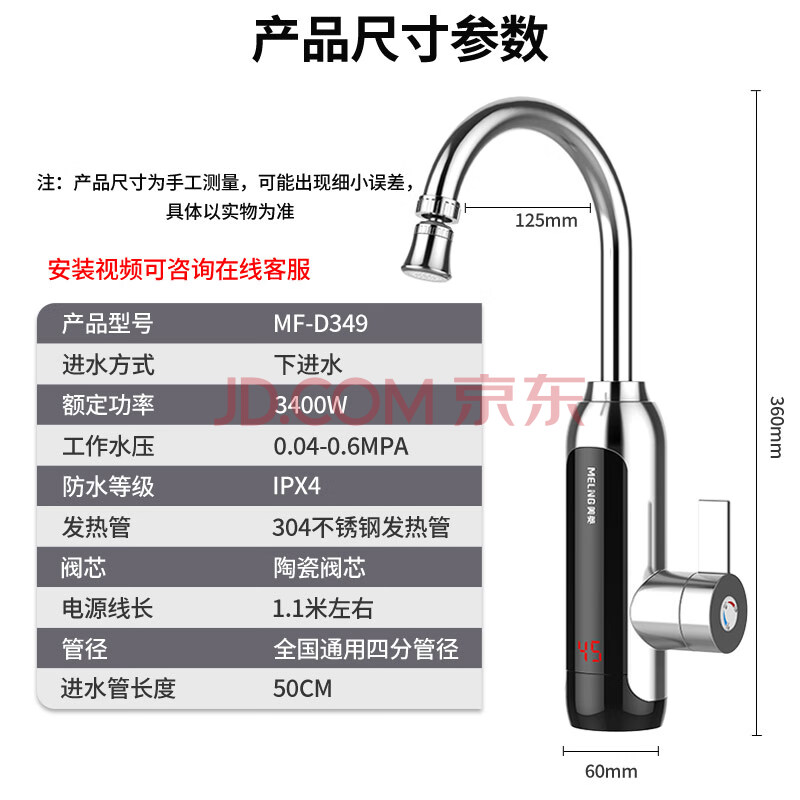 商品相册:美菱(MeiLing)电热水龙头下进水速热即热式热水宝快速热电热水器家用速热水龙头MF-D349银色款第