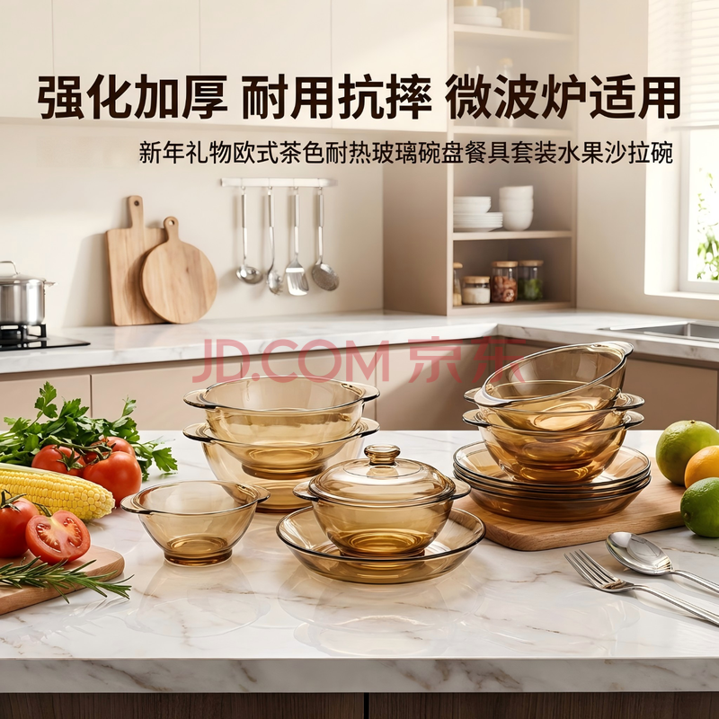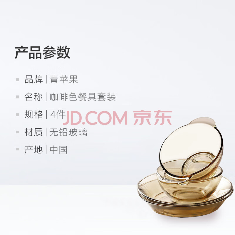 商品相册:青苹果新年礼物欧式茶色耐热玻璃碗盘餐具套装水果沙拉碗2碗2盘4件套第