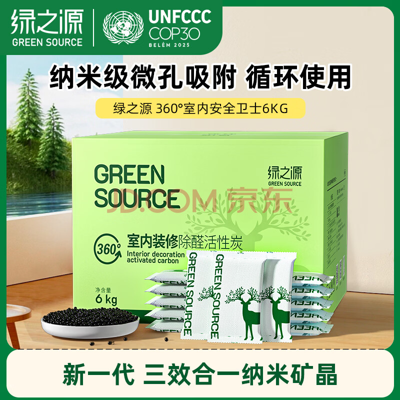 商品相册:绿之源活性炭除甲醛6kg360室内装修新房除甲醛净化碳包除味活性炭60包第