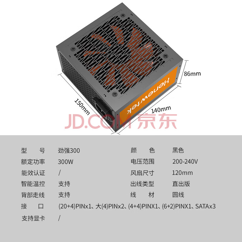 商品相册:大水牛(BUBALUS)额定300W 劲强300台式电脑电源(12CM风扇/宽幅/智能温控/低待机功耗/支持背线)第