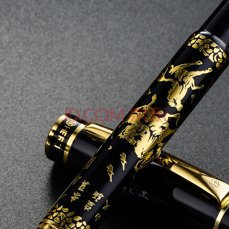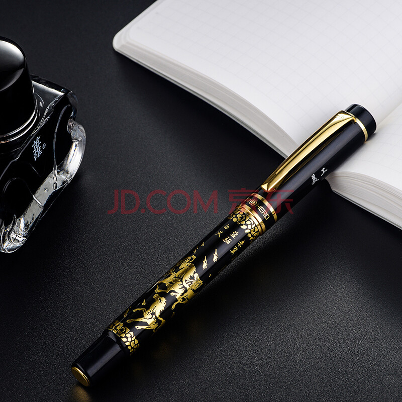 商品相册:英雄(HERO)钢笔黑色铱金八骏图钢笔墨水笔明尖 9063第