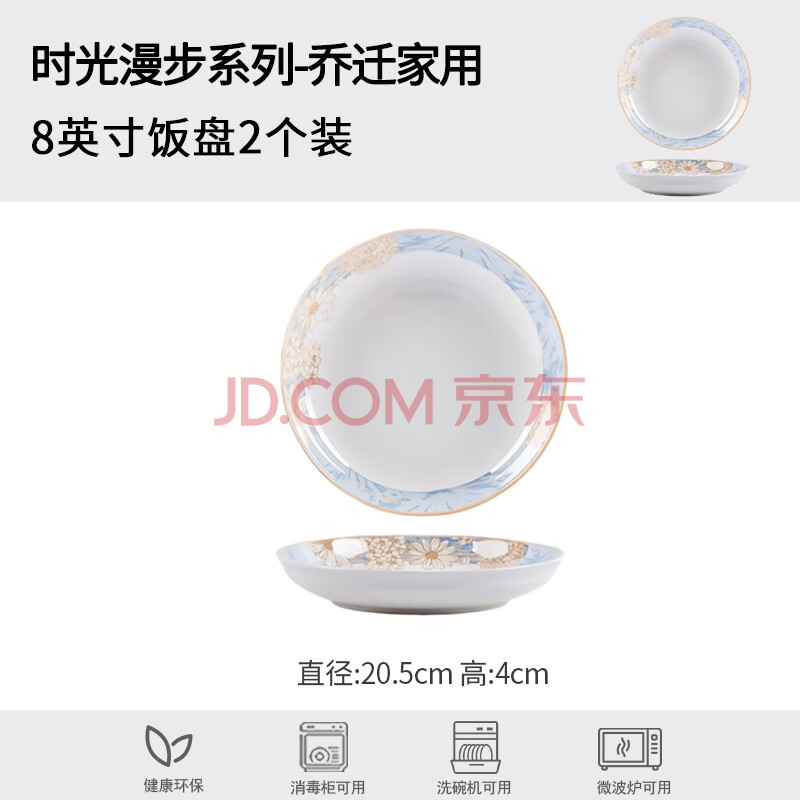 商品相册:浩雅景德镇陶瓷盘餐盘汤盘菜盘深盘饭盘可微波时光漫步8英寸2个装第
