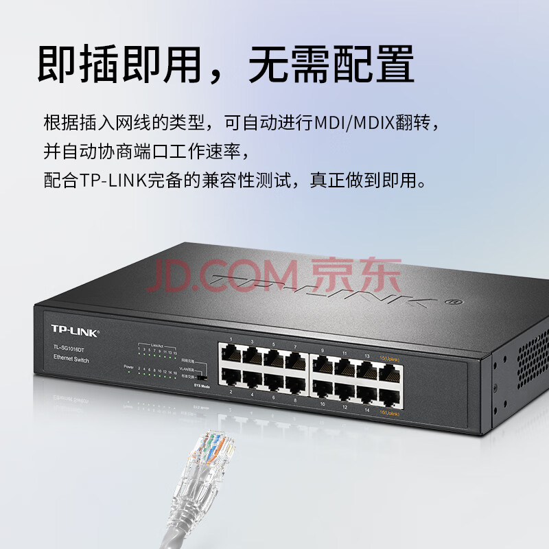 商品相册:普联(TP-LINK)16口全千兆交换机 非网管T系列 企业级交换器 监控网络网线分线器 分流器 TL-SG1016DT第1张/共7