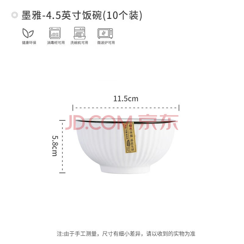 商品相册:浩雅 釉下彩景德镇陶瓷碗具米饭碗面碗汤碗微波炉墨雅4.5英寸10个装第