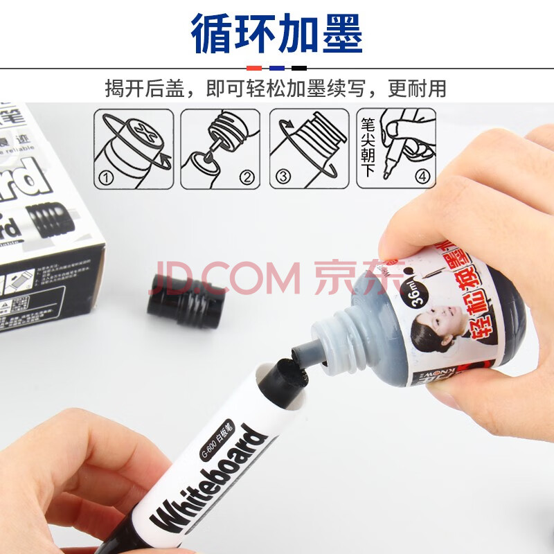 商品相册:金万年黑色白板笔可擦易擦办公培训教学会议 耐磨笔头书写顺畅10支/ 盒G-600-001第