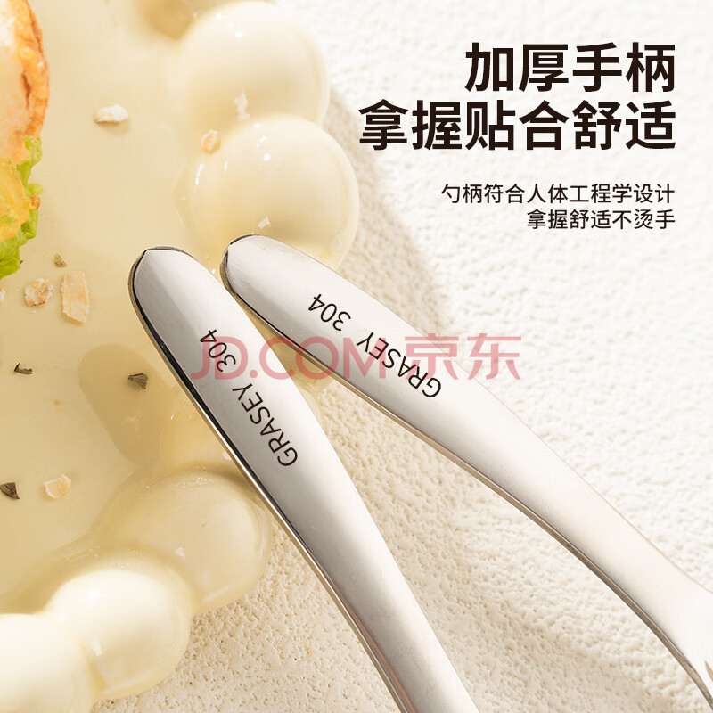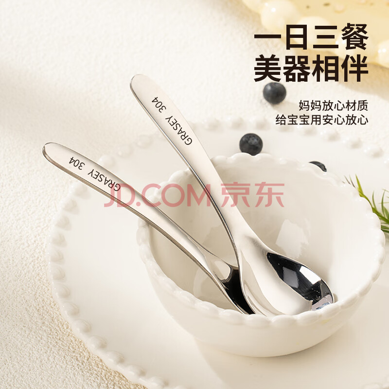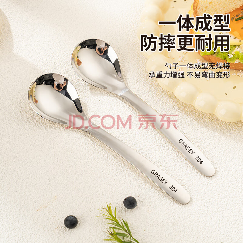 商品相册:广意304不锈钢儿童汤勺汤匙加厚圆底餐勺吃饭勺子 调羹2支装GY7840第