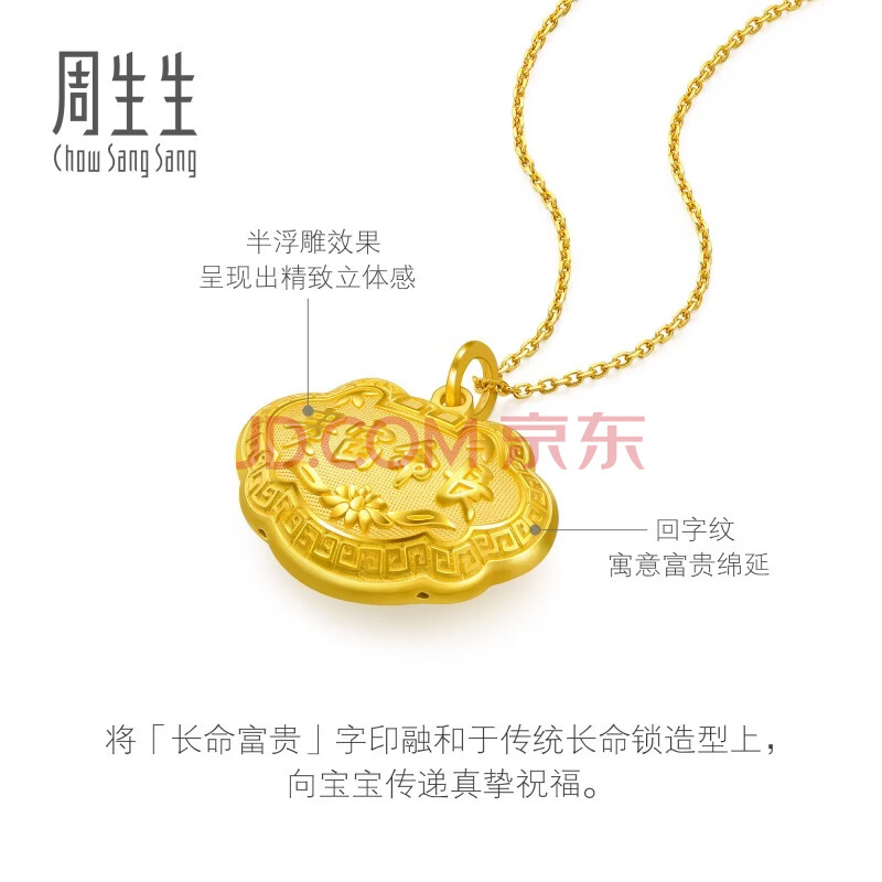 商品相册:周生生黄金吊坠 足金长命锁宝宝礼物不含项链09300P 计价 3.45克第
