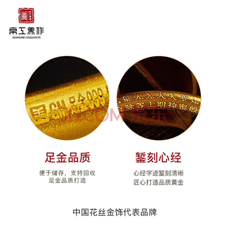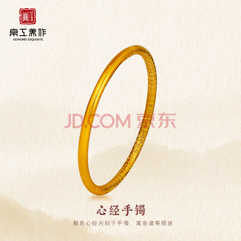 商品相册:京工美作古法黄金手镯足金999心经手镯按克妈妈生日礼物送老婆58#26.93g第