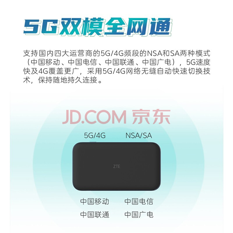 商品相册:中兴(ZTE)5G随身WiFi6/移动插卡路由器cpe/无线上网卡/千兆网口/MU5001第