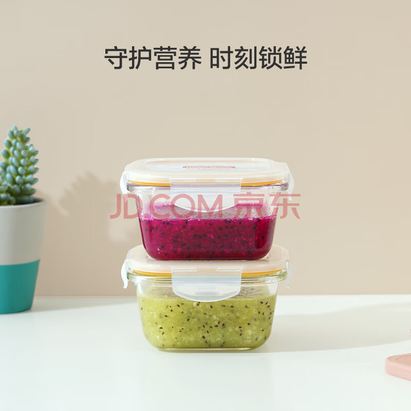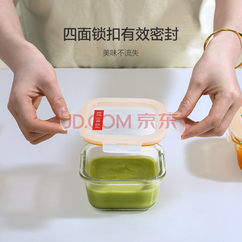商品相册:乐扣乐扣(LOCK&LOCK)婴儿耐热玻璃餐具宝宝辅食碗冷冻收纳密封保鲜盒300ML*2经典方形第1张/共8