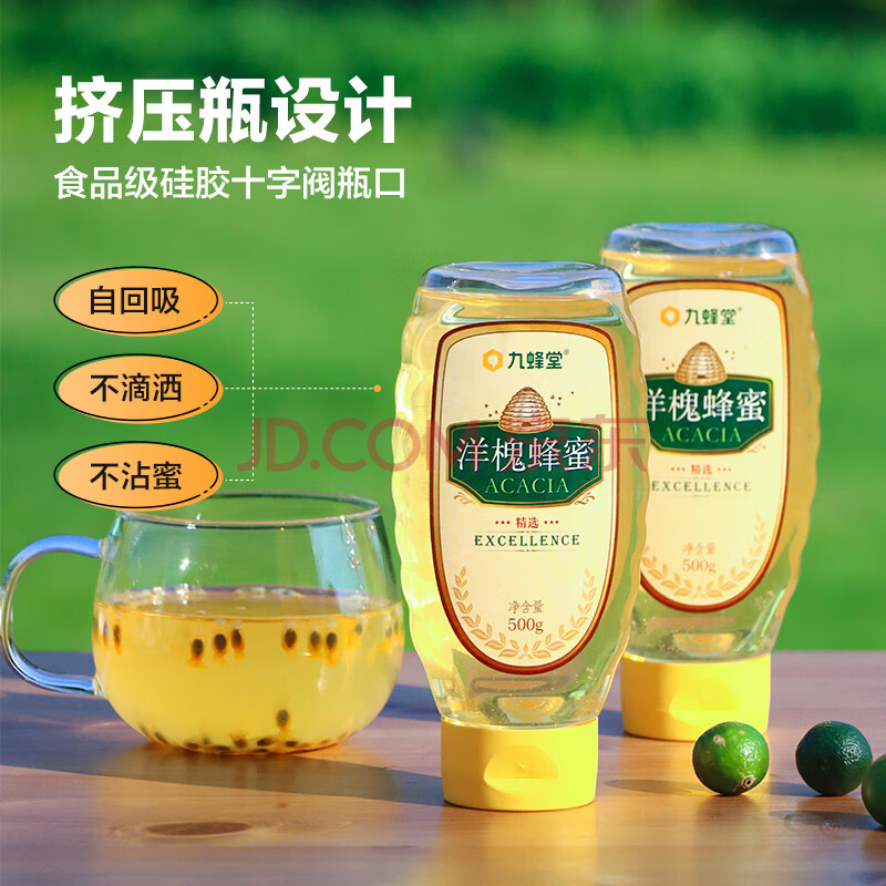 商品相册:九蜂堂蜂蜜洋槐蜜500g便携装牛奶麦片伴侣孕妇儿童纯正天然成熟补气血第