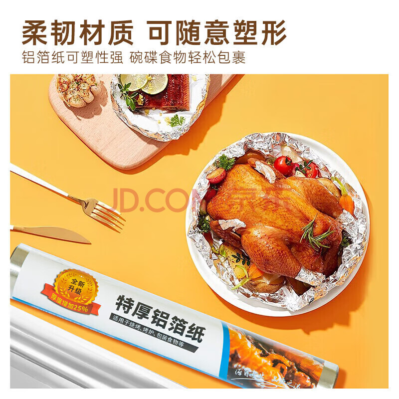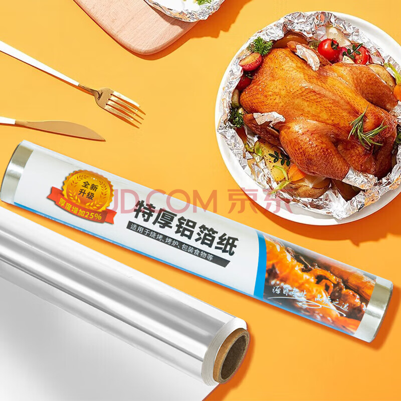 商品相册:特美居特厚铝箔锡纸卷50m*38cm*18微米空气炸锅纸烤箱纸烘焙烧烤锡纸第