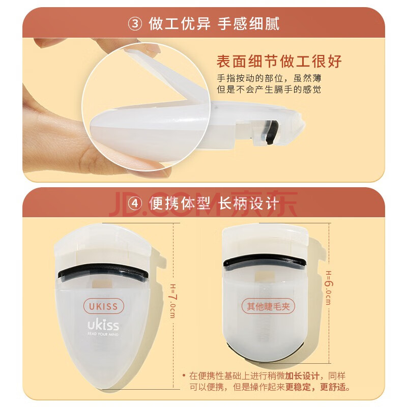 商品相册:悠珂思(ukiss)便携式睫毛夹02#冰透粉 局部新手电眼美睫镊 不夹肉定型卷翘器 第