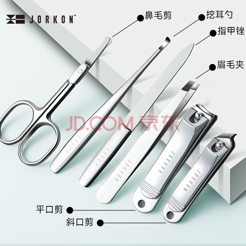 商品相册:尖工指甲刀套装工具 6件男士斜口指甲剪钳鼻毛剪挖耳勺 送礼第