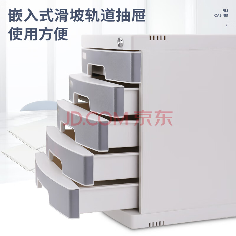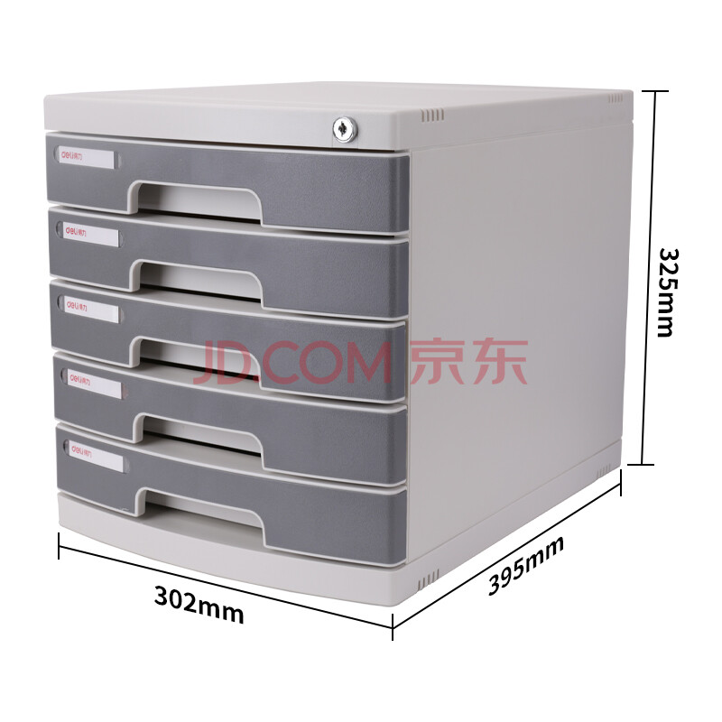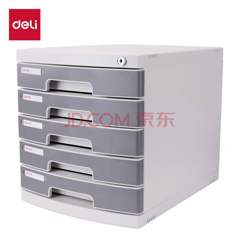 商品相册:得力(deli)5层带锁手拉办公桌书桌桌面收纳盒文件柜收纳柜抽屉式 桌面带索引标签资料 学科试卷分类 灰色8855第