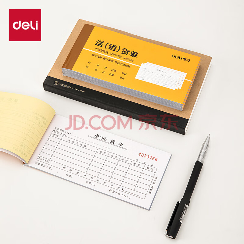 商品相册:得力(deli)【超级爆款】10本无碳复写三联送(销)货单 财务手写单据 9386第1张/共4