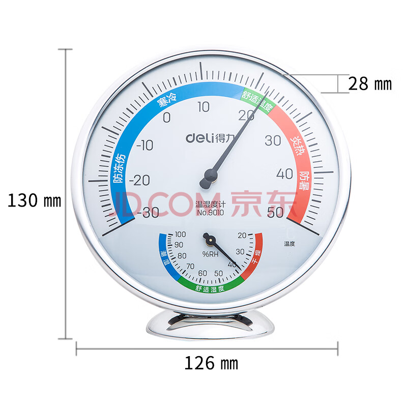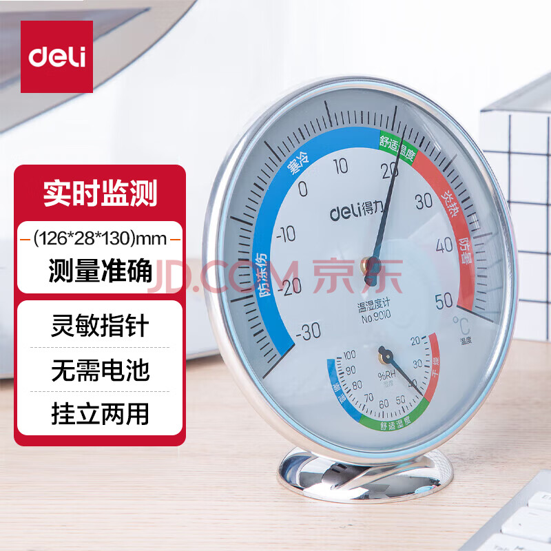 商品相册:得力(deli)室内温湿度计老人婴儿儿童生日 台式免电池大表盘 办公用品 大号第