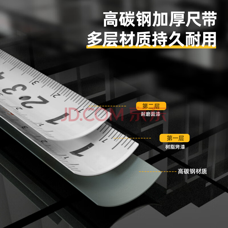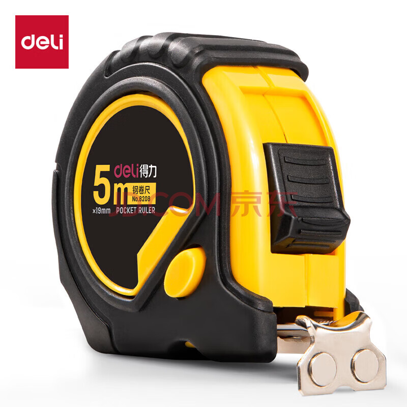 商品相册:得力(deli)5m全包胶带锁定钢卷尺 木工尺装修测量尺子 办公用品 8208 黄色第
