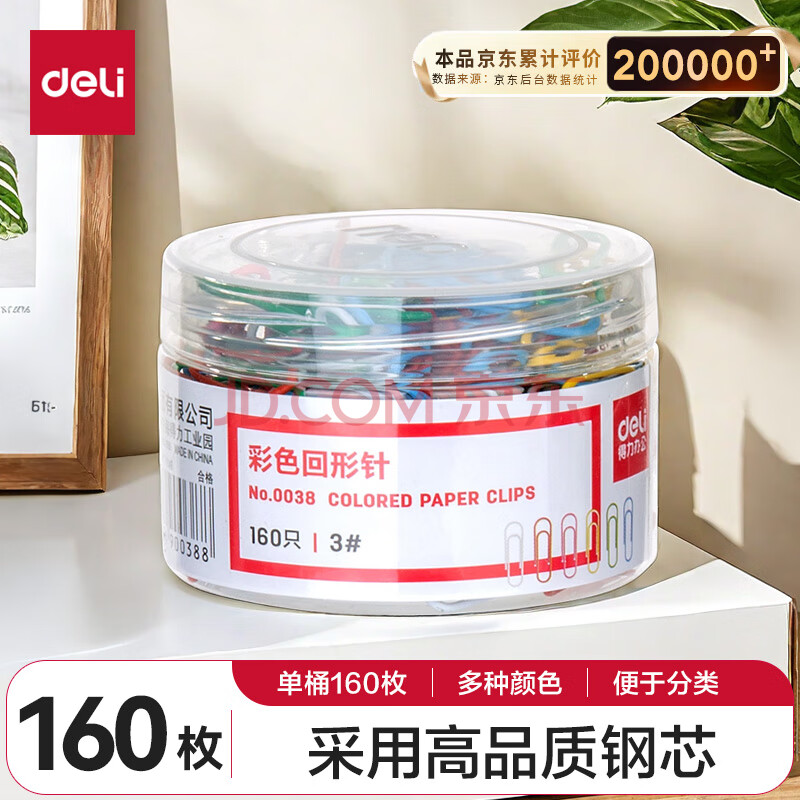 商品相册:得力(deli)【热门商品】160枚29mm彩色回形针 3#彩色金属曲别针 家庭办公室财务收纳多功能 0038第