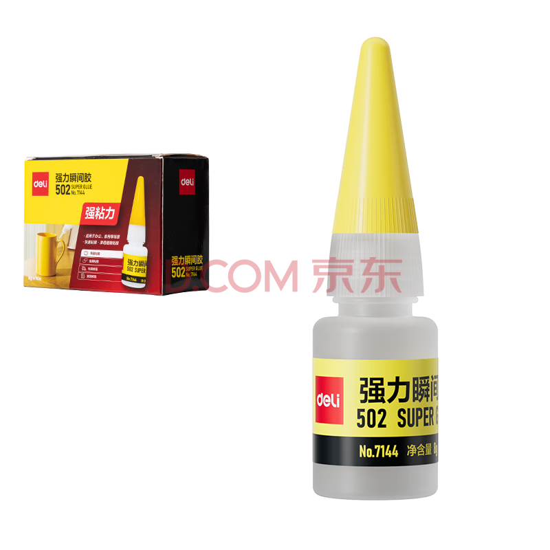 商品相册:得力(deli)(deli)502胶水 瞬间胶强力胶 准确点胶 无痕胶透明胶粘剂 可粘金属陶瓷木材 8g单支凑单 7144第
