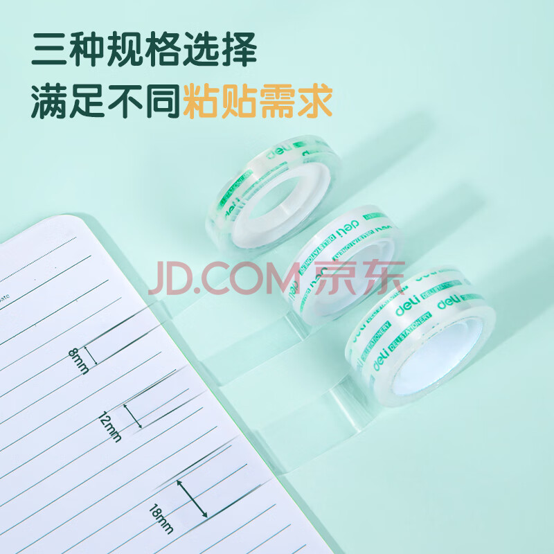 商品相册:得力(deli)易撕透明胶带 12mm*18m高粘小胶带 开学必备学习用品 错题整理学生文具 6卷/筒 办公用品 30029第