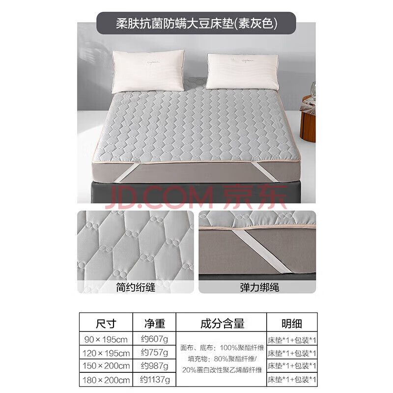 商品相册:水星家纺褥子床垫大豆纤维床垫子被褥铺底抗菌防螨学生宿舍单双人1.8x2米第