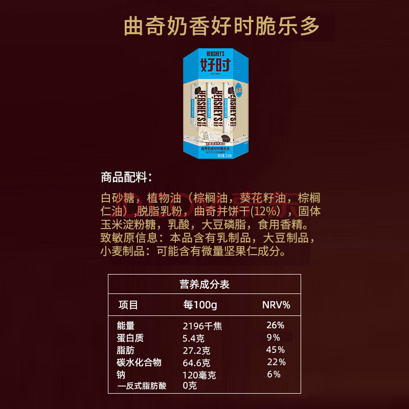 商品相册:好时 曲奇奶香脆乐多 14条210g 分享装 下午茶零食送女生 生日礼物第