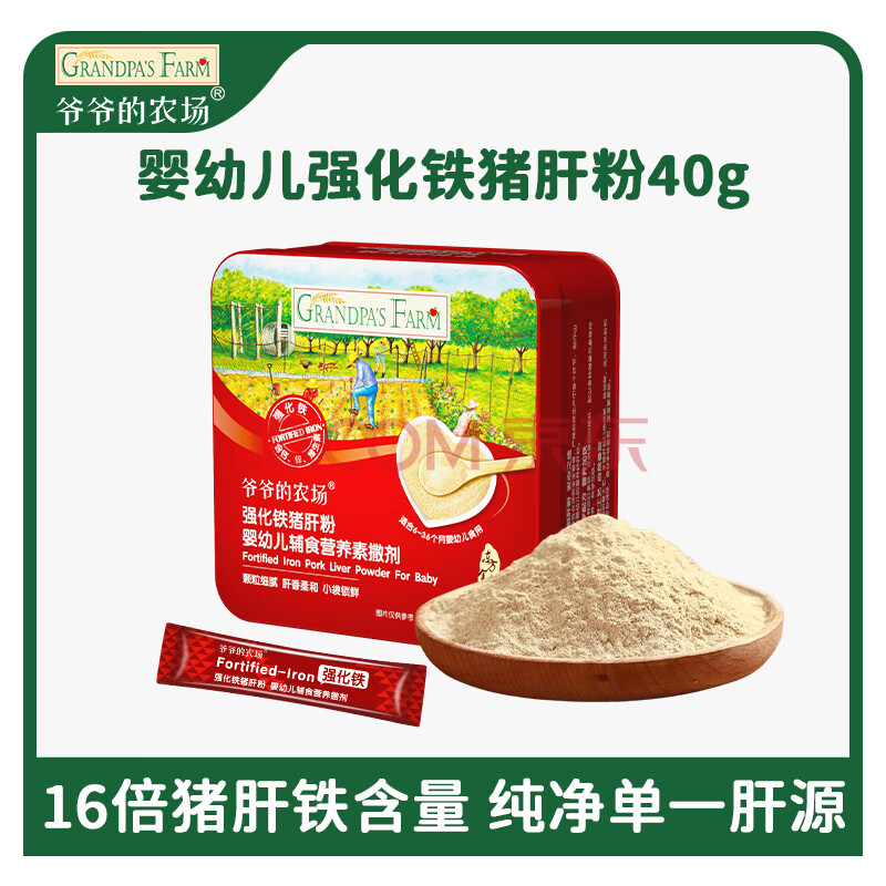 商品相册:爷爷的农场婴幼儿强化铁猪肝粉40g 宝宝辅食配料调味拌饭料6个月以上补铁第