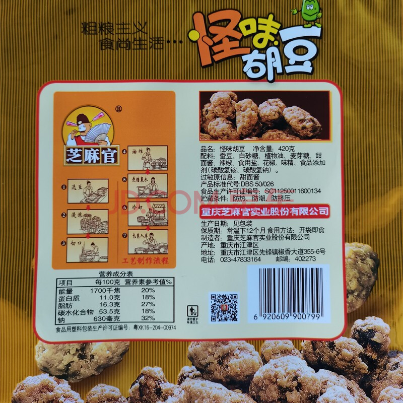 商品相册:芝麻官怪味胡豆重庆特产420g小吃零食休闲怀旧每日坚果甄选解馋蚕豆第