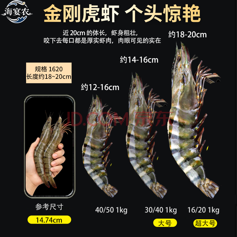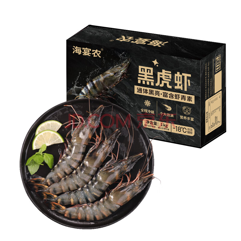 商品相册:海宴农福建黑虎虾特大号 新货净含量1kg 16~20只/盒 礼盒第