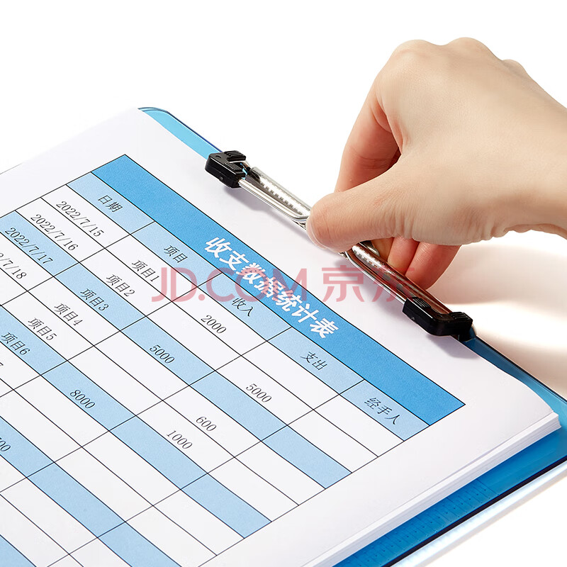 商品相册:齐心(COMIX)A4带刻度便携式书写板夹文件夹 可吊挂垫板 透明蓝 单个装A744第