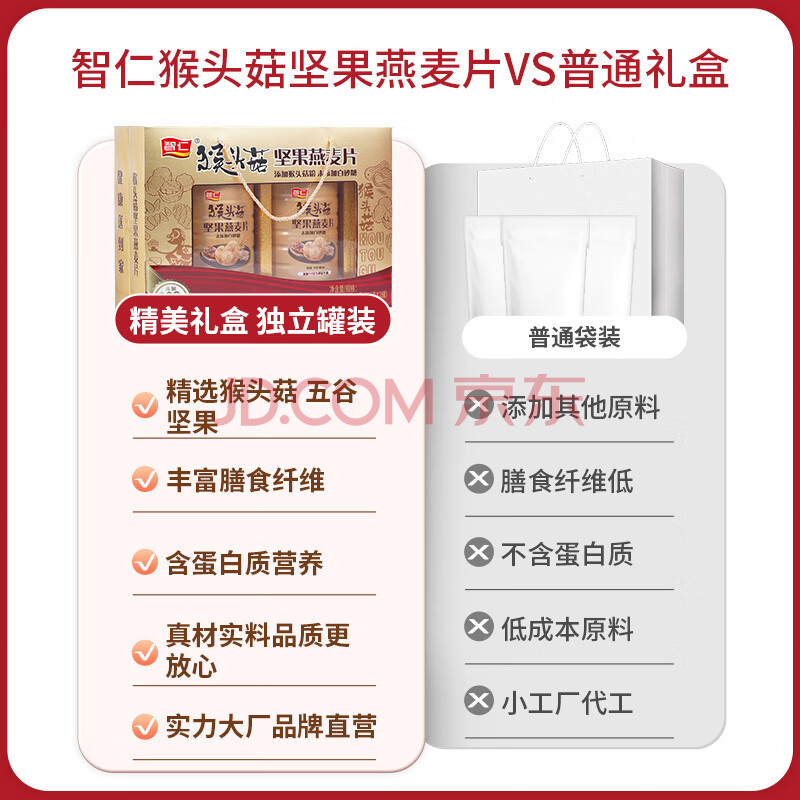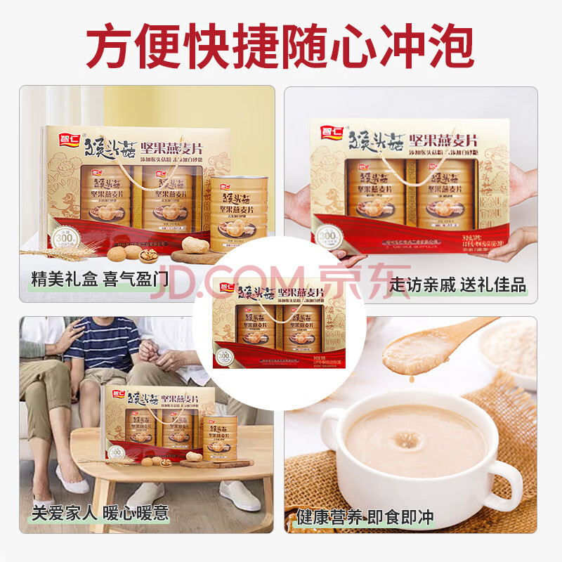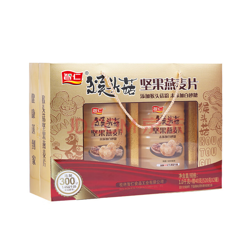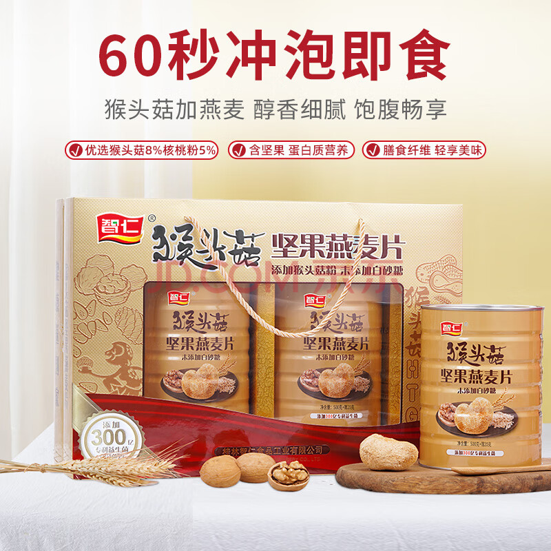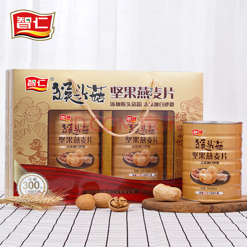 商品相册:智仁猴头菇坚果燕麦片 营养谷物即食早餐送长辈礼佳品年货礼盒1040g第
