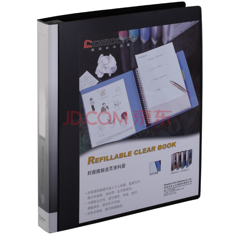 商品相册:齐心(Comix) NF407A-S 活页资料册A4 40页30孔塑胶夹文件册 黑色第1张/共5