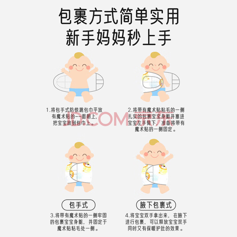 商品相册:爱宝适婴儿防惊跳睡袋新生儿纯棉包巾襁褓宝宝抱被安抚神器2条装S292第1张/共7