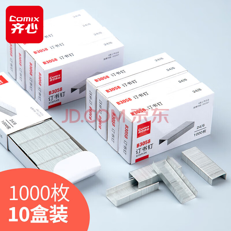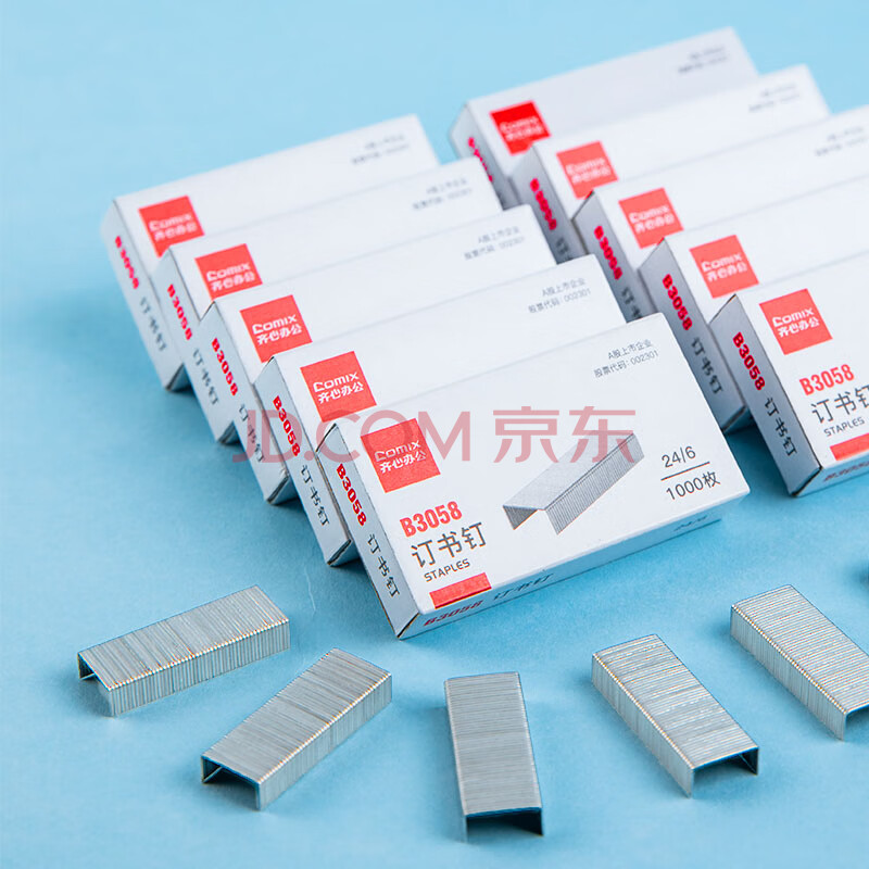 商品相册:齐心(COMIX)订书钉 12#订书针 1000枚/盒 10盒装 办公文具 工具 B3058第