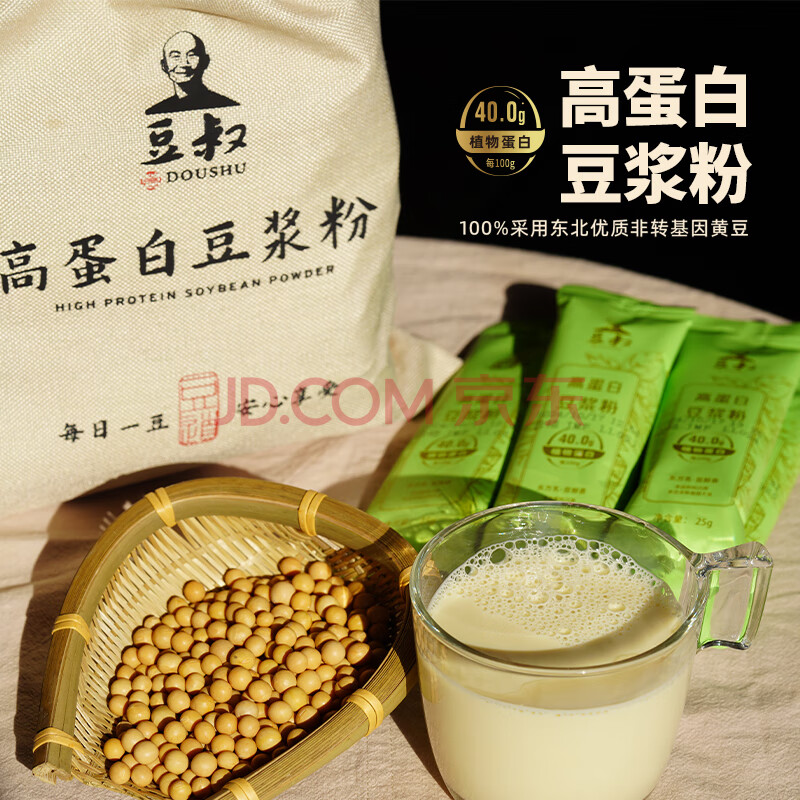 商品相册:豆叔原味豆浆粉纯豆浆粉40%高蛋白非转基因750g25g*30条/袋第