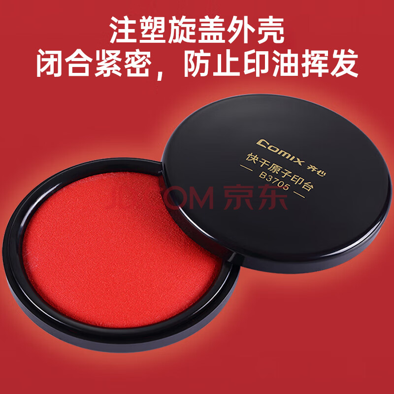 商品相册:齐心(COMIX)φ98mm圆形圆形速干印台/印泥/印泥盒 财务办公用品 红色 B3706第1张/共9