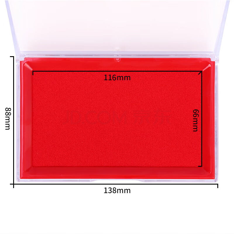 商品相册:得力(deli)【超级爆款】快干印台138*88mm透明外壳方形快干印油印台印泥财务办公用品内盘面116*66mm红色9864第
