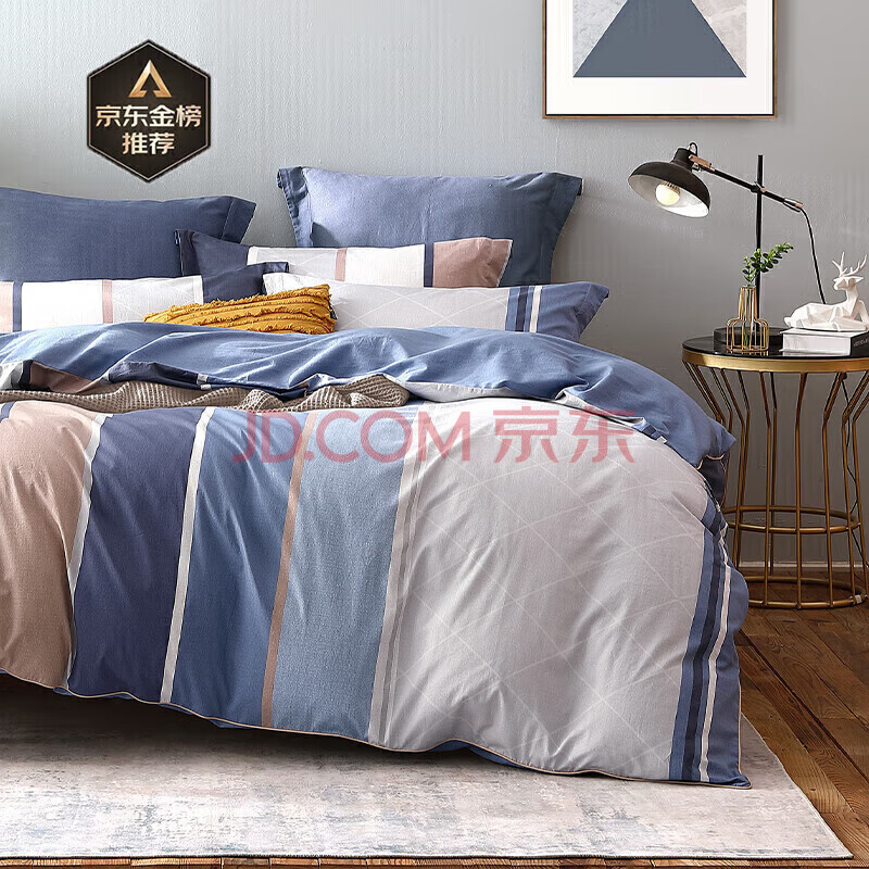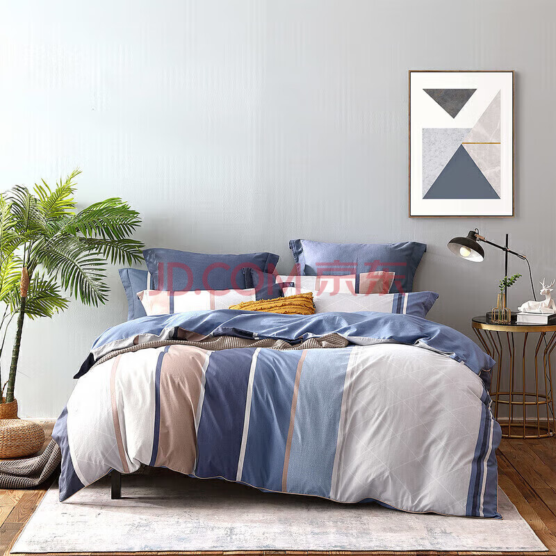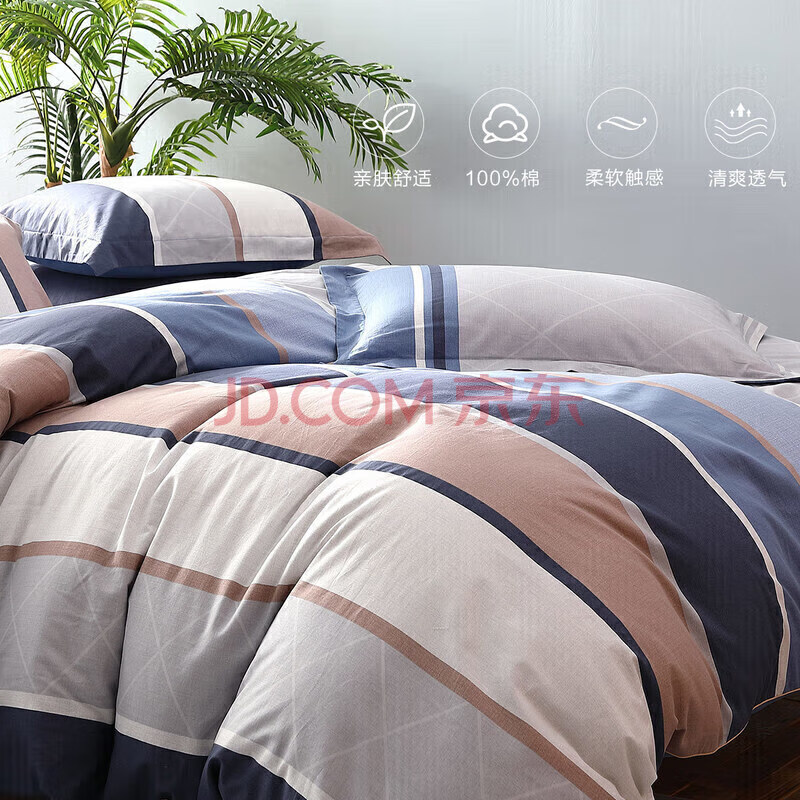 商品相册:水星家纺四件套床上纯棉100%全棉透气床单被套双人1.8米x2米床弗利安家居馆第