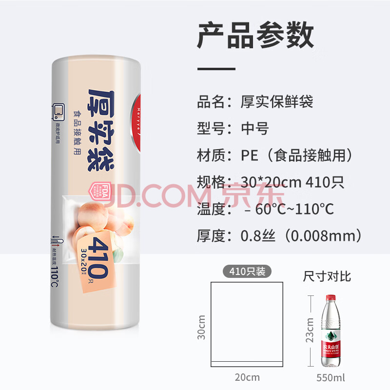 商品相册:美丽雅 食品级保鲜袋中号 点断式塑料家用加厚袋子 410只30*20cm第